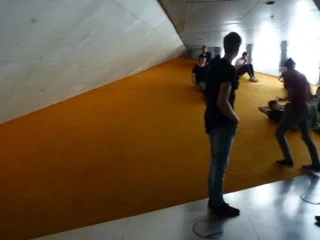 L'ironie de cette partition est que l'intérieur a été conçu avant l'extérieur c'est à dire que les deux auditoriums primaient sur tout le reste, en découlent certains espaces improbables .....